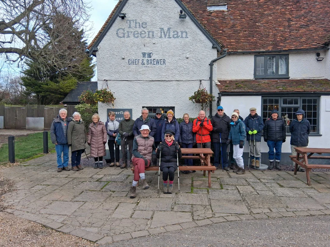 At Hoar’s Lane we turned right towards Temple End. At Temple End, we turned right on to a track. This track took us back up Chalk Hill towards the Red Lion. Then we walked back up the High Street to the Green Man for a welcome drink and our food that we had ordered at the stat of the Walk.