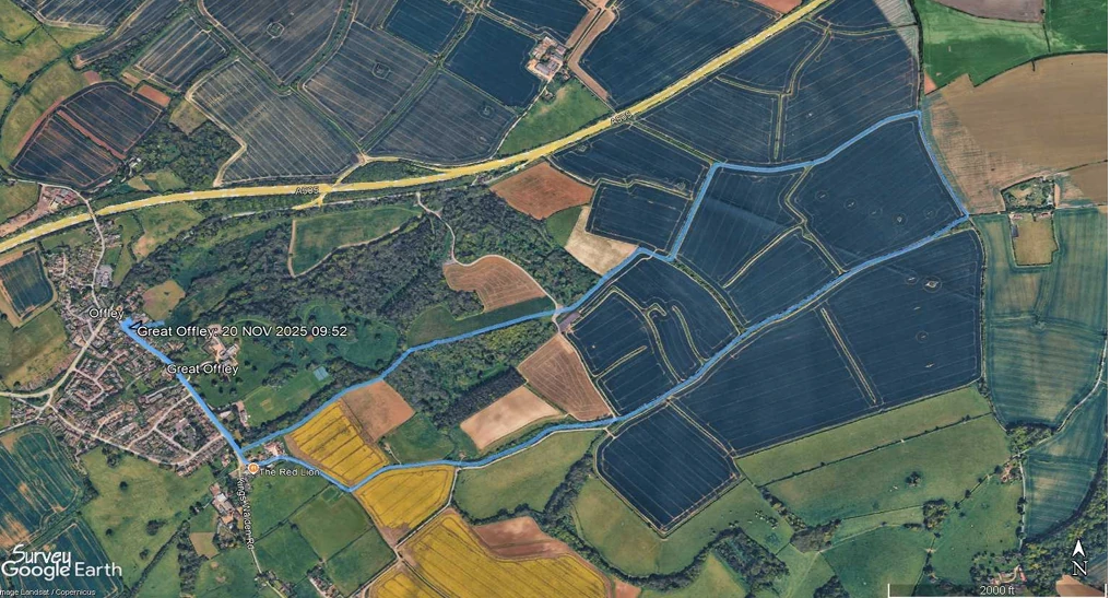 From Great Offley into the countryside in the general
